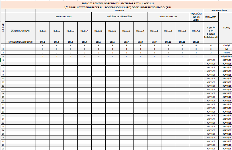 1.dönem sonu süreç odaklı değerlendirme ölçeği