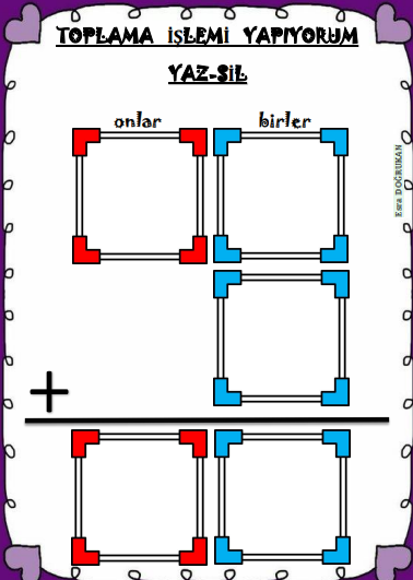 1.Sınıf > Matematik > Toplama İşlemi Yaz-Sil Şablonu