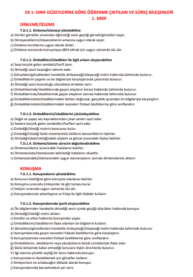 1.Sınıf > Diğer > Öğrenme Çıktıları ve Süreç Değerlendirme