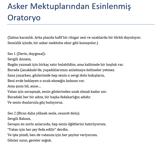 Diğer > Belirli Gün ve Haftalar > Asker Mektuplarından Esinlenmiş Oratoryo