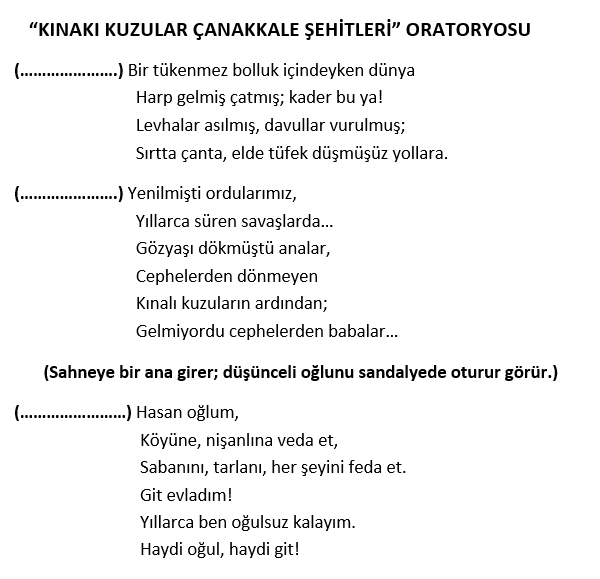 Diğer > Belirli Gün ve Haftalar > Kınalı Kuzular Çanakkale Şehitleri Oratoryosu