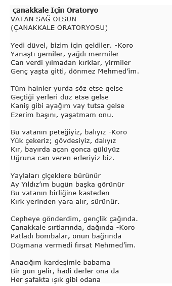 Diğer > Belirli Gün ve Haftalar > Çanakkale İçin Oratoryo