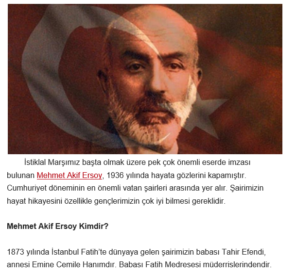 Diğer > Belirli Gün ve Haftalar > Mehmet Akif Ersoy'un Hayatı