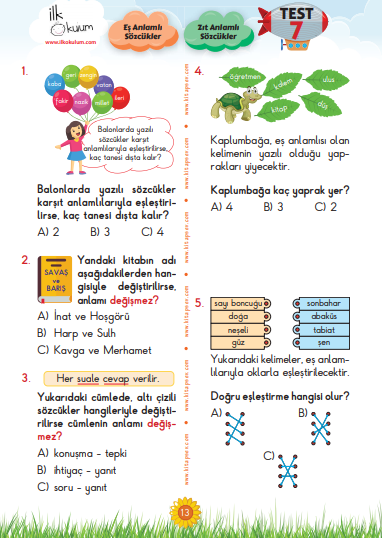 5.Sınıf > Türkçe > Eş Ve Zıt Anlamlı Kelimeler