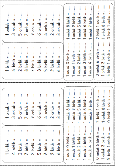 1.Sınıf > Matematik > Onluk-Birlik Başlangıç Defter Etkinliği