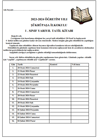 Dosya Adı : 1.Sınıf 15 Tatil Kitabı